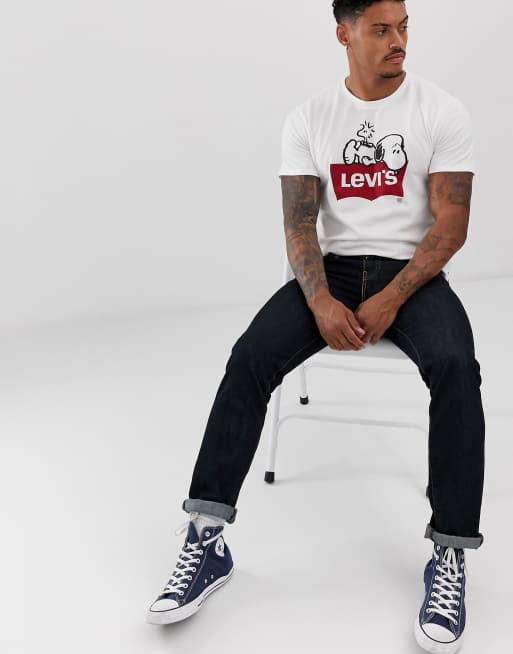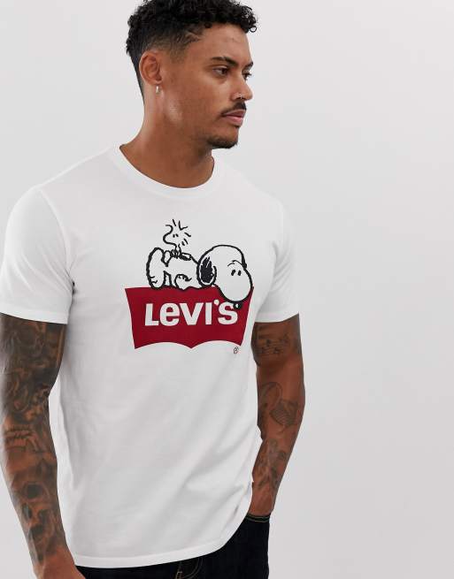 Levi S Peanuts Snoopy Batwing Logo T Shirt In White Asos